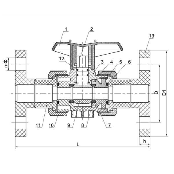 1. 雙由任球閥 PTFE 墊座松緊可適度調整。